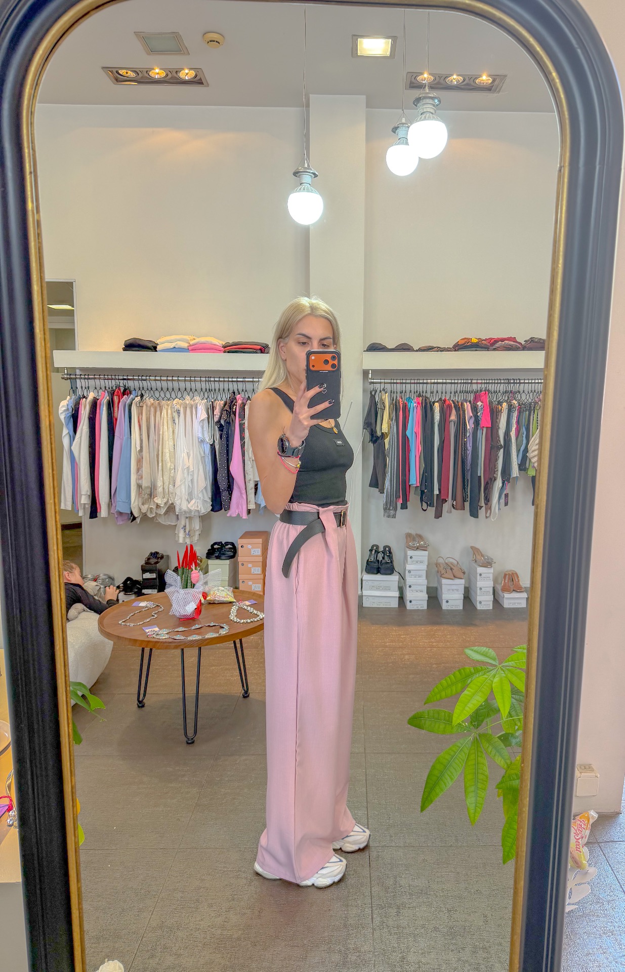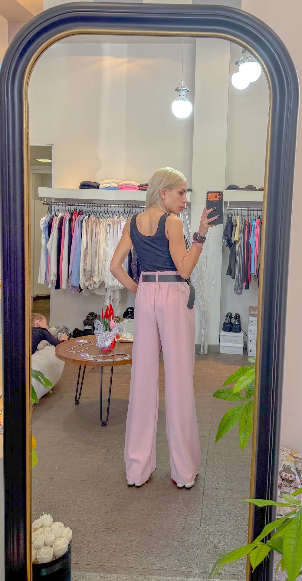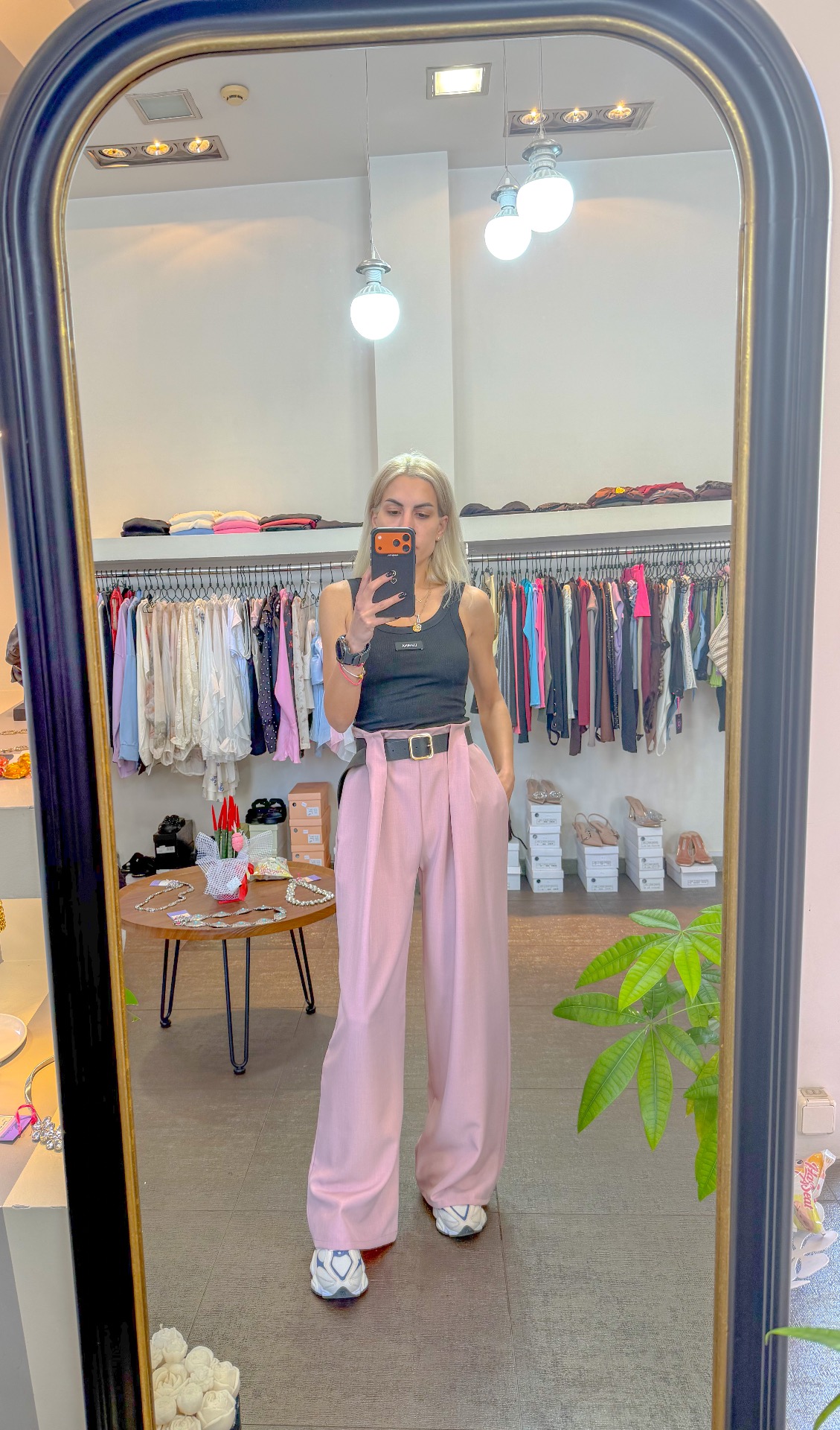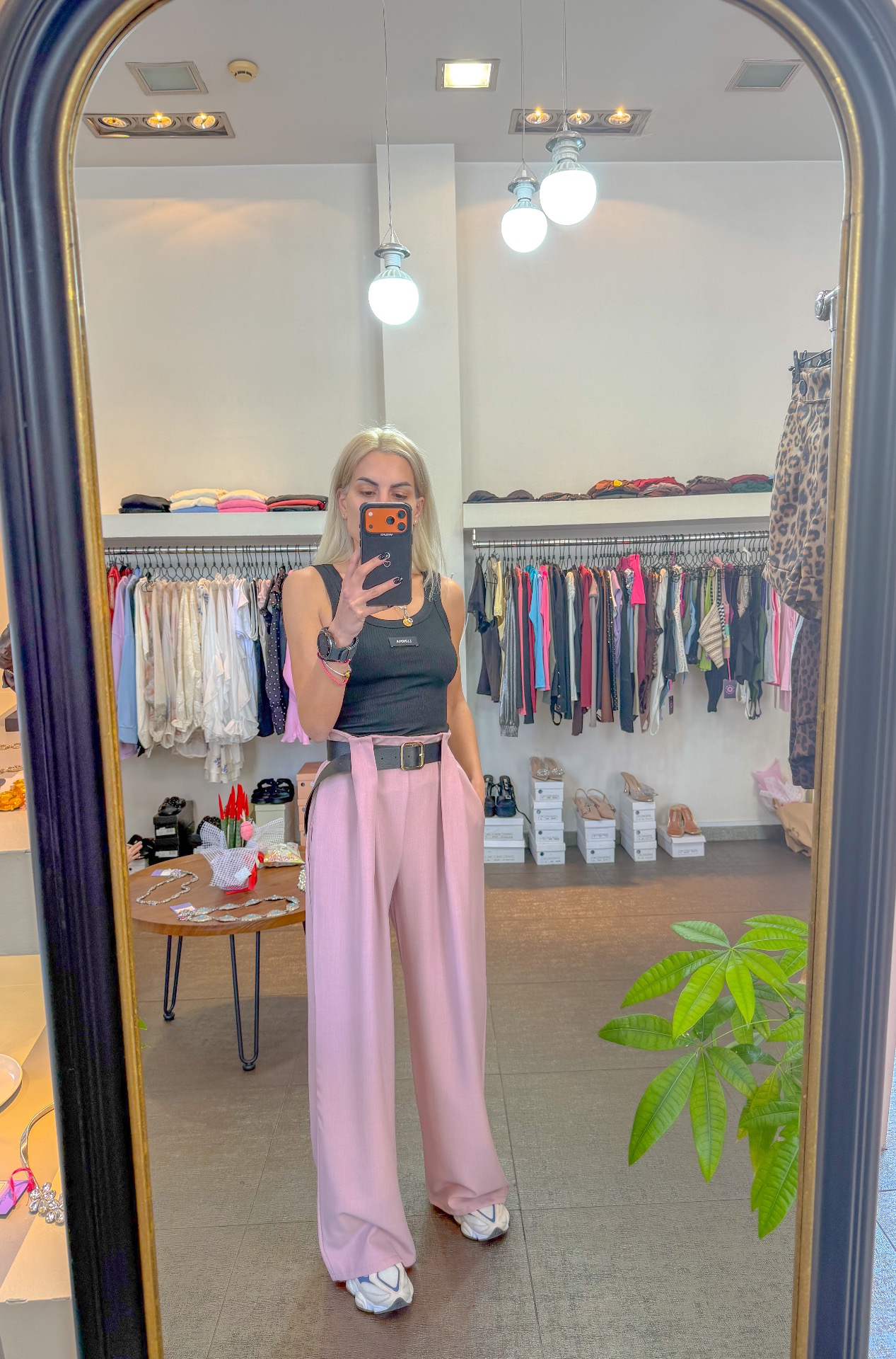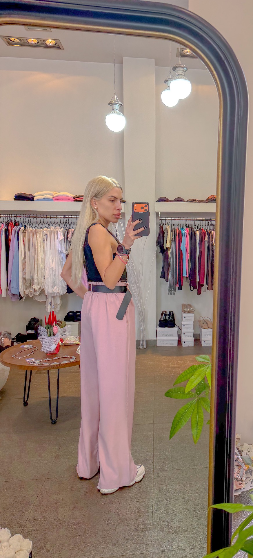 Pink pants with belt